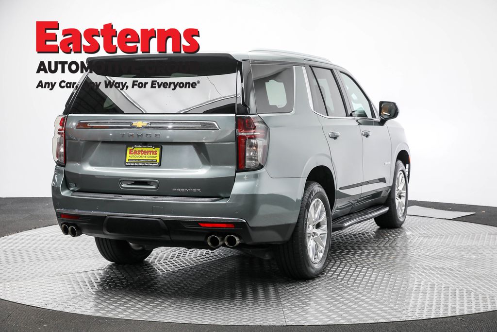 2023 Chevrolet Tahoe Premier Silver Sage Metallic 4WD 10-Speed Automatic with Overdrive 4WD, Black Leather, 1st & 2nd Row Color-Keyed Carpeted Floor Mats, 2-Speed Active Electronic AutoTrac Transfer Case, 20" x 9" Polished Aluminum Wheels, 3rd Row 60/40 Power-Folding Split-Bench Seat, Apple CarPlay/Android Auto, Auto-dimming door mirrors, Auto-Dimming Inside Rear-View Mirror, Automatic temperature control, Black Roof Rack Cross Rails, Bose 10-Speaker Centerpoint Surround Audio Sys Ft, Brake assist, Bright Front & Rear Door Sill Plates, Chrome Door Handles w/Body-Color Strip, Chrome Mirror Caps, Color-Keyed Carpeting Floor Covering, Driver & Front Outboard Passenger Airbags, Dual Exhaust System, Enhanced Driver Information Center, Floor Console, Front dual zone A/C, Garage door transmitter, Hands-Free Rear Power Programmable Liftgate, Heated & Ventilated Driver & Front Passenger Seats, Heated 2nd Row Outboard Seats, Heated Steering Wheel, Hill Descent Control, Infotainment Display, Lane Change Alert w/Side Blind Zone Alert, LED Daytime Running Lamps, License Plate Front Mounting Package, Magnetic Ride Control Suspension, Memory seat, Memory Settings, Outside Heated Power-Adjustable Mirrors, Perforated Leather Seat Trim, Power driver seat, Power Liftgate, Power passenger seat, Power Release 2nd Row Bucket Seats, Power Tilt & Telescopic Steering Column, Preferred Equipment Group 1LZ, Rain sensing wipers, Rear air conditioning, Rear Cross Traffic Alert, Rear window defroster, Rear window wiper, Remote keyless entry, Remote Start, Safety Alert Seat, SiriusXM Radio w/360L, Speed control, Steering wheel memory, Universal Home Remote, Wireless Charging, Wrapped Steering Wheel.