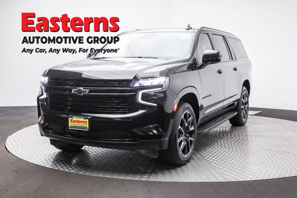 2024 Chevrolet Suburban RST Black RWD 10-Speed Automatic with Overdrive 10-Way Power Driver & Passenger Seat Adjusters, 1st & 2nd Row Color-Keyed Carpeted Floor Mats, 3rd row seats: split-bench, Apple CarPlay/Android Auto, Auto-Dimming Inside Rear-View Mirror, Automatic temperature control, Bose 9-Speaker Stereo Audio System Feature, Brake assist, Bright Front & Rear Door Sill Plates, Color-Keyed Carpeting Floor Covering, Driver & Front Outboard Passenger Airbags, Enhanced Driver Information Center, Floor Console w/Storage Area, Front dual zone A/C, Garage door transmitter, Hands-Free Rear Power Programmable Liftgate, Heated door mirrors, Heated Driver & Front Passenger Seats, Infotainment Display, LED Daytime Running Lamps, License Plate Front Mounting Package, Low tire pressure warning, Memory seat, Memory Settings For Driver, Perforated Leather Seating Surfaces, Power door mirrors, Power driver seat, Power Liftgate, Preferred Equipment Group 1SP, Premium Smooth Ride Suspension, Rain sensing wipers, Rear air conditioning, Rear window defroster, Rear window wiper, Remote keyless entry, Remote Start, SiriusXM w/360L, Speed control, Split folding rear seat, Universal Home Remote, Wheel Locks (Set of 4) (LPO), Wheels: 22" x 9" Bright Machined, Wireless Charging, Wrapped Steering Wheel.