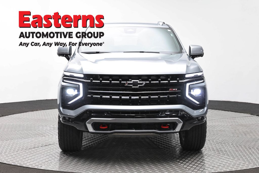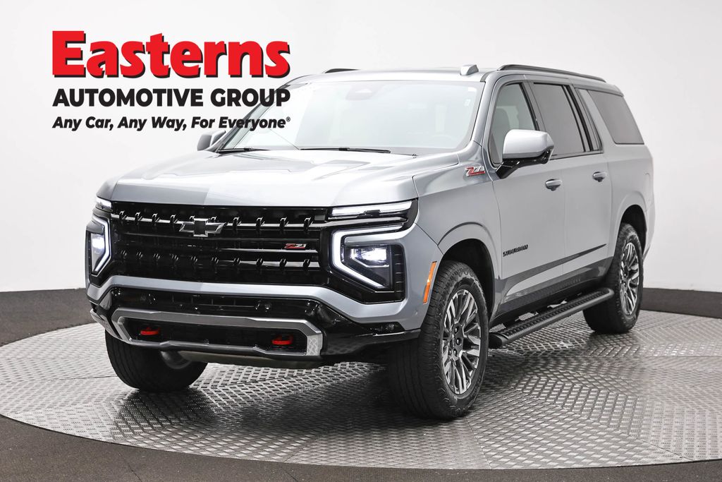 2025 Chevrolet Suburban Z71 Sterling Gray Metallic 4WD 10-Speed Automatic with Overdrive 2-Speed Active Electronic AutoTrac Transfer Case, 2-Way Driver Power Lumbar Seat Adjuster, 2-Way Front Passenger Power Lumbar Seat Adjuster, 3rd row seats: split-bench, 6-Speaker Audio System, 8-Way Power Driver Seat Adjuster, 8-Way Power Front Passenger Seat Adjuster, Auto-Dimming Inside Rear-View Mirror, Automatic temperature control, Black Tubular Assist Steps, Brake assist, Bright Front and Rear Door Sill Plates, Dual Exhaust System, Exterior Parking Camera Rear, Front dual zone A/C, Front fog lights, Front High-Approach Angle Fascia, Front LED Fog Lamps, Garage door transmitter, Heated door mirrors, Heated Driver and Front Passenger Seats, Heavy-Duty Air Filter, Hill Descent Control, Leather-Appointed Seating, License Plate Front Mounting Package, Memory seat, Memory Settings For Driver, Power door mirrors, Preferred Equipment Group 2Z7, Premium Smooth Ride Suspension, Radio: 17.7" Diagonal Advanced Color LCD Display, Rain sensing wipers, Rear air conditioning, Rear Power Liftgate, Rear window defroster, Rear window wiper, Red Recovery Hooks, Remote keyless entry, SiriusXM with 360L Trial Subscription, Speed control, Split folding rear seat, Universal Home Remote, Wheels: 20" x 9" Bright Machined Aluminum, Wireless Apple CarPlay/Wireless Android Auto, Wireless Phone Charging, Z71 Exterior Features.