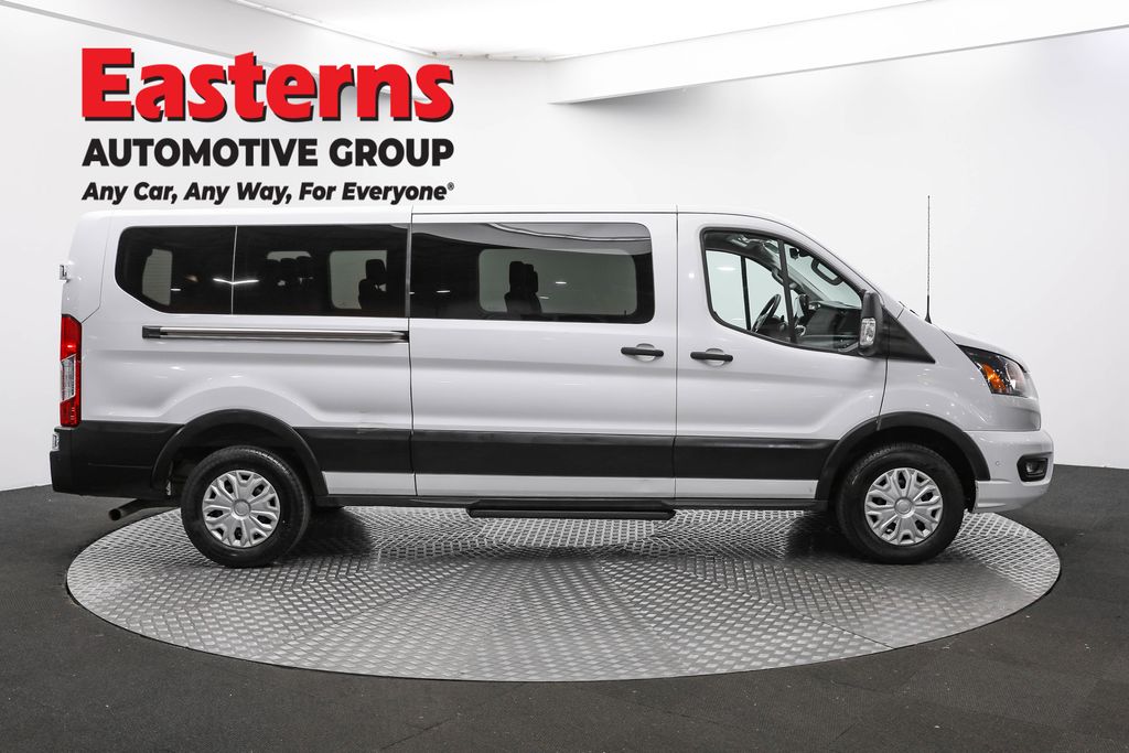 2023 Ford Transit-350 XLT Oxford White RWD 10-Speed Automatic with Overdrive 3rd row seats: split-bench, 4th-Row Bench Seat, Brake assist, Electronic Air Temperature Control, Front Fog Lamps, Low tire pressure warning, Order Code 302A, Power door mirrors, Power Running Boards (DISC), Privacy Glass, Radio: AM/FM Stereo w/SYNC 4/SiriusXM w/360L/Nav, Rain sensing wipers, Rear air conditioning, Rear window defroster, Remote keyless entry, Traction control.