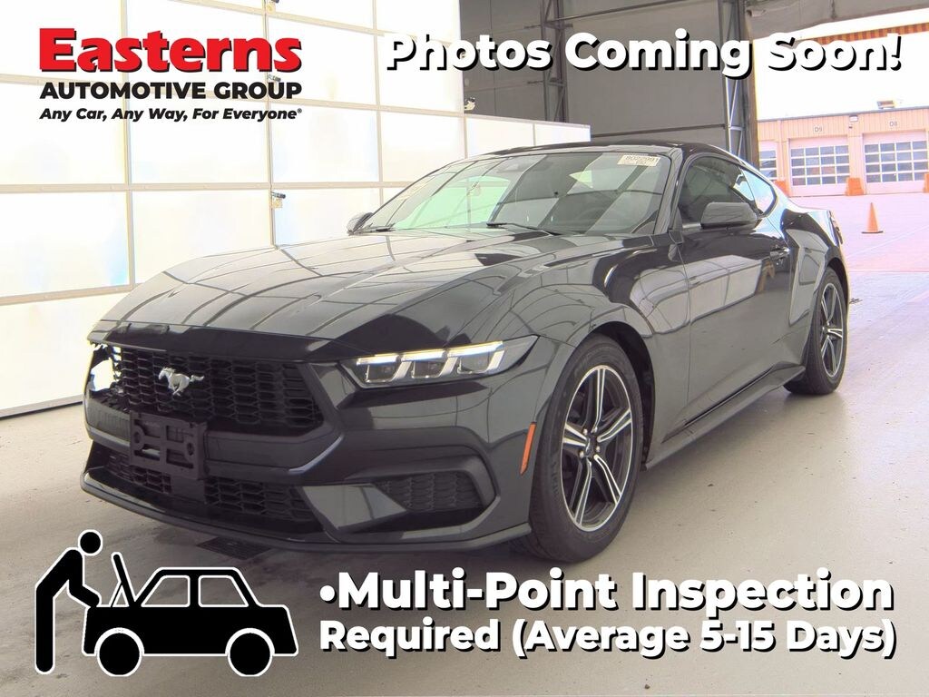 2024 Ford Mustang EcoBoost Dark Matter Gray Metallic RWD 10-Speed Automatic 9-Speaker Stereo System, Brake assist, Cloth/Vinyl Heated Bucket Seats, Dual-Zone Electronic Automatic Temperature Control, Equipment Group 101A High Package, Exterior Parking Camera Rear, Power door mirrors, Rain sensing wipers, Rear Parking Sensors, Rear window defroster, Remote keyless entry, SiriusXM w/360L & HD Radio, Speed control, Split folding rear seat, SYNC 4.0 QNX, Wheels: 18" x 8" Machined-Face Aluminum.