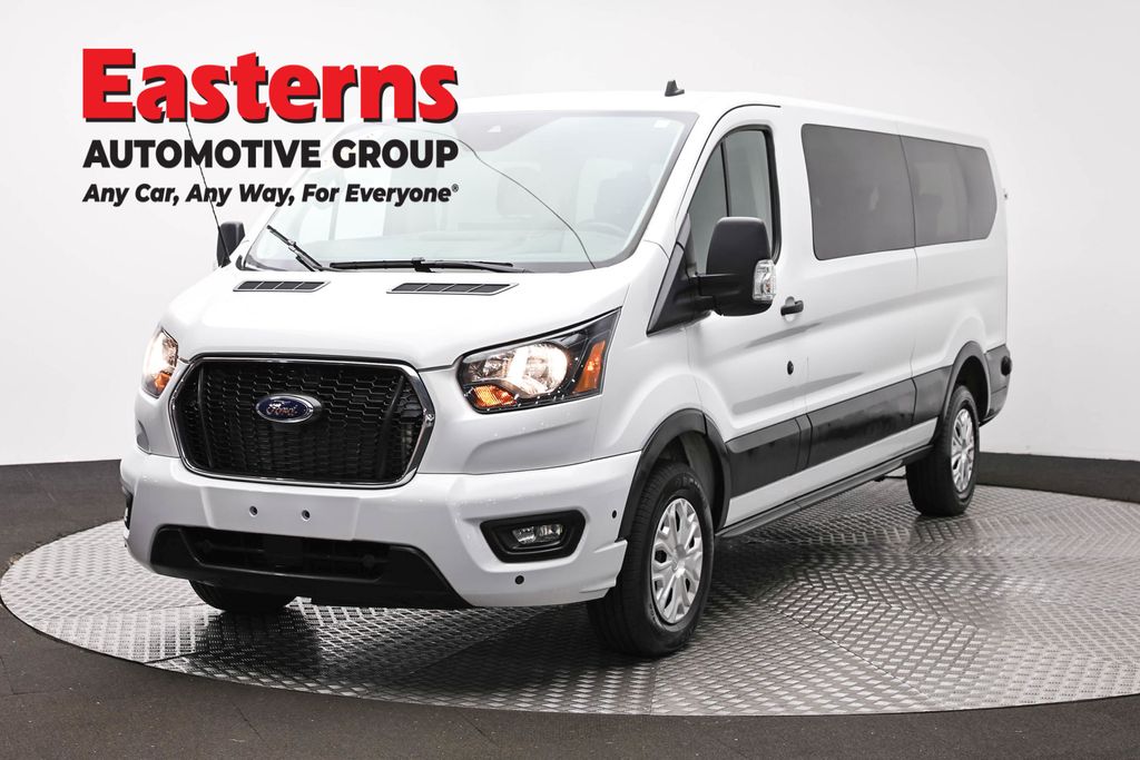 2024 Ford Transit-350 XLT Oxford White RWD 10-Speed Automatic with Overdrive 3rd row seats: split-bench, 4th-Row Bench Seat, Brake assist, Electronic Air Temperature Control, Front Fog Lamps, Low tire pressure warning, Order Code 302A, Power door mirrors, Privacy Glass, Radio: AM/FM Stereo w/SYNC 4/SiriusXM w/360L/Nav, Rain sensing wipers, Rear air conditioning, Rear-Window Defroster, Remote keyless entry, Speed control, Traction control.