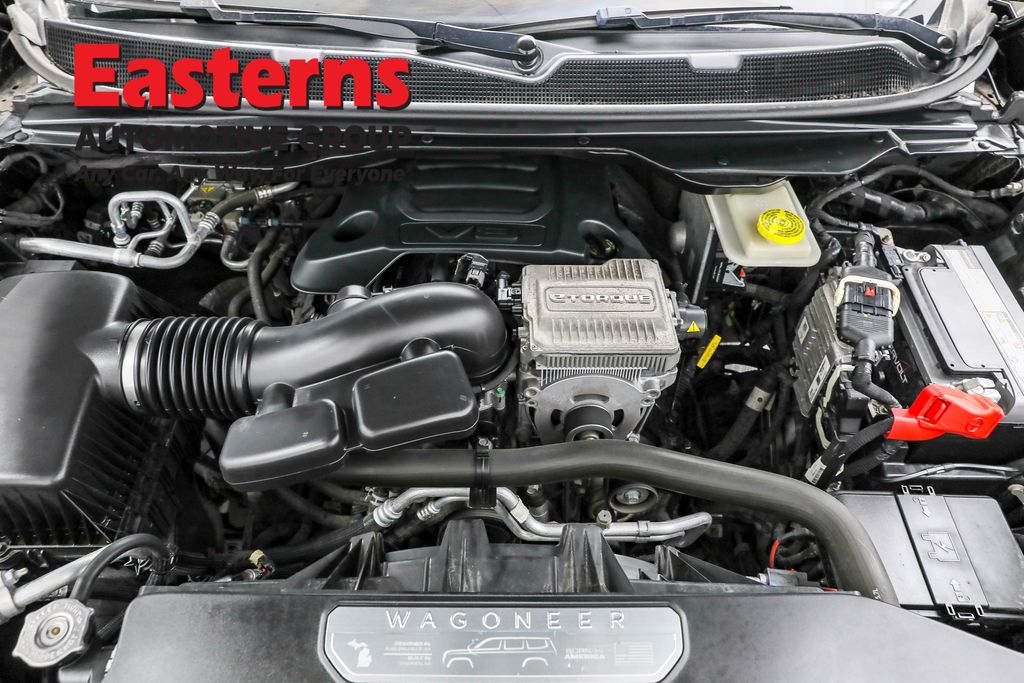 2022 Jeep Wagoneer Series II Diamond Black Crystal Pearlcoat 4WD 8-Speed Automatic 3rd row seats: bench, Adjustable pedals, Auto-dimming door mirrors, Auto-dimming Rear-View mirror, Auto-leveling suspension, Automatic temperature control, Brake assist, Exterior Parking Camera Rear, Front dual zone A/C, Front fog lights, Front Passenger Interactive Display, Garage door transmitter, Heated door mirrors, Heated front seats, Heated steering wheel, Leather Trimmed Bucket Seats, Low tire pressure warning, Memory seat, Pedal memory, Power door mirrors, Power driver seat, Power Liftgate, Power passenger seat, Quick Order Package 22J, Rain sensing wipers, Rear dual zone A/C, Rear window defroster, Rear window wiper, Reclining 3rd row seat, Remote keyless entry, Speed control, Split folding rear seat, Steering wheel memory, Traction control, Ventilated front seats, Wheels: 20" x 9.0" Aluminum Base Finish.