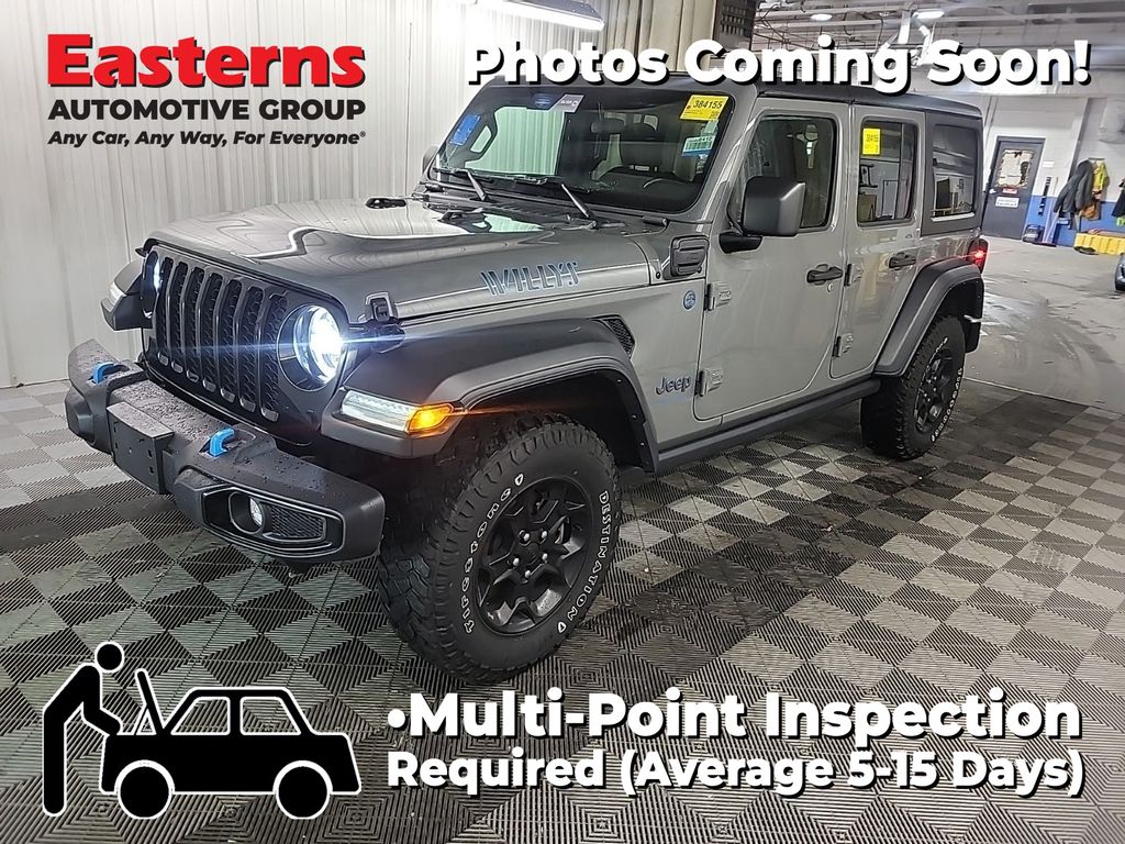 2023 Jeep Wrangler Base 4xe Sting-Gray Clearcoat 4WD 8-Speed Automatic 2.0L I4 DOHC, 4xe 4-Wheel Drive Swing Gate Decal, 97 MPH Vehicle Max Speed Calibration, Anti-Spin Differential Rear Axle, Apple CarPlay/Android Auto, Automatic temperature control, Black 3-Piece Hard Top, Black Grille, Brake assist, Cold Weather Group, Convenience Group, Freedom Panel Storage Bag, Front dual zone A/C, Front fog lights, Front LED Fog Lamps, Heated door mirrors, Heated Front Seats, Heated Steering Wheel, LED Headlamp & Fog Lamp Group, LED Premium Reflector Headlamps, Molded-In-Color Fender Flares (2-Piece), MOPAR All-Weather Floor Mats, Normal Duty Suspension, ParkView Rear Back-Up Camera, Power door mirrors, Quick Order Package 29W Willys, Radio: Uconnect 4C Nav w/8.4" Display, Rear Window Defroster, Rear Window Wiper/Washer, Remote keyless entry, Remote Start System, Speed control, Split folding rear seat, Universal Garage Door Opener, Wheels: 17" x 7.5" Black Aluminum, Willys, Willys 4xe Hood Decal.