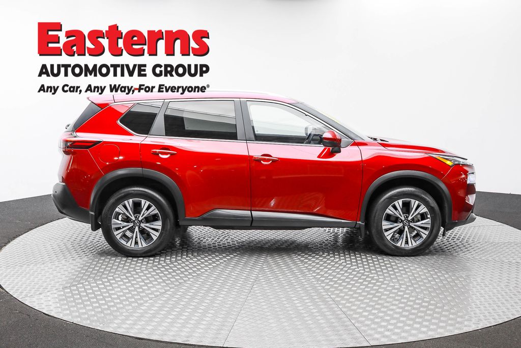 2022 Nissan Rogue SV Scarlet Ember Tintcoat AWD CVT with Xtronic AWD, 18" Aluminum Alloy Wheels, Automatic temperature control, Black Splash Guards (Set of 4), Brake assist, Chrome Rear Bumper Protector, First Aid Kit, Floor Mats w/1-Piece Cargo Area Protector, Front dual zone A/C, Heated door mirrors, Heated Driver & Front Passenger Seats, Heated Leather Wrapped Steering Wheel, Leatherette Door Trim Inserts w/Stitch, NissanConnect featuring Apple CarPlay and Android Auto, Power door mirrors, Power driver seat, Power Liftgate, Power Panoramic Moonroof, PRIMATEX Leatherette Seat Trim, Rear Door Sunshades, Rear Parking Sensors, Rear Personal Lights, Rear window defroster, Rear window wiper, Remote keyless entry, Silver Painted Roof Rails, Special Paint - Scarlet Ember Tintcoat, Speed control, Split folding rear seat, SV Premium Package.