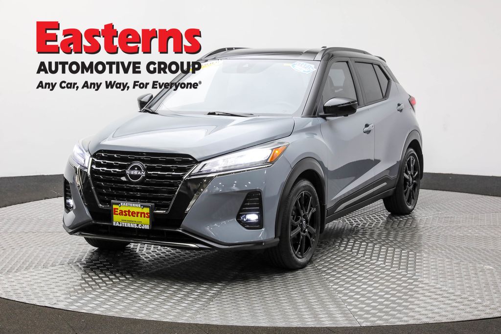 2023 Nissan Kicks SR Gray/Super Black FWD CVT with Xtronic Apple CarPlay/Android Auto, Automatic temperature control, Blind Spot Warning, Bose Personal Plus Audio System, Brake assist, Carpeted Floor Mats w/Cargo Mat, Exterior Parking Camera Rear, Front fog lights, Heated door mirrors, Heated Front Seats, Heated Steering Wheel, NissanConnect Services, Power door mirrors, Prima-Tex Appointed Seat Trim, Rear Parking Sensors, Rear window defroster, Rear window wiper, Remote keyless entry, Security System, Special Paint - Gray/Super Black, Speed control, Splash Guards Grain (4 Piece), Split folding rear seat, SR Premium Package, Technology Package, Tonneau Cover, Wheels: 17" Black Alloy.