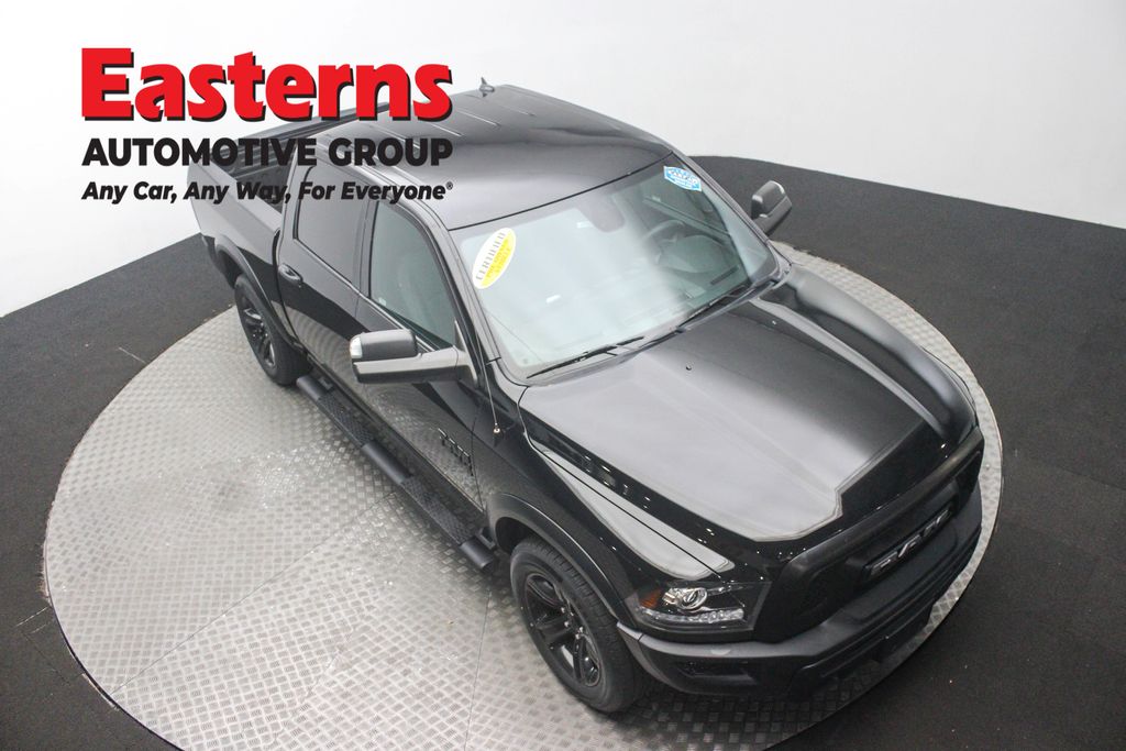 2023 Ram 1500 Classic Warlock Diamond Black Crystal Pearlcoat 4WD 8-Speed Automatic 1 Year Trial (Registration Required), 1-Yr SiriusXM Guardian Trial, 115V Auxiliary Power Outlet, 40/20/40 Split Bench Seat, 4G LTE Wi-Fi Hot Spot, 4x4 Flat Black Badge, 5-Year SiriusXM Traffic Service, 5-Year SiriusXM Travel Link Service, 8.4" Touchscreen Display, Air Conditioning ATC w/Dual Zone Control, All Radio Equipped Vehicles, All VP4R Radios, Apple CarPlay, Audio Input Jack for Mobile Devices, Auto-Dimming Rear-View Mirror, B-Pillar Black Out, Bi-Function Halogen Projector Headlamps, Black Exterior Truck Badging, Black Grille w/RAM Lettering, Black Headlamp Filler Panel, Black Powder Coated Front Bumper, Black Powder Coated Rear Bumper, Black RAM Head Tailgate Badge, Black Wheel Flares, Brake assist, Center Stack Storage Drawer, Cluster 7.0" TFT Color Display, Electronics Group, Folding Flat Load Floor Storage, For Details Visit DriveUconnect.com, Front Center Seat Cushion Storage, Front Wheel Well Liners, Global Telematics Box Module (TBM), Google Android Auto, GPS Antenna Input, GPS Navigation, HD Radio, Heated door mirrors, Humidity Sensor, Integrated Center Stack Radio, Integrated Voice Command w/Bluetooth, Low tire pressure warning, Media Hub (2 USB, AUX), Mopar Black Tubular Side Steps, MOPAR Spray In Bedliner, ParkSense Rear Park Assist System, ParkView Rear Back-Up Camera, Power 10-Way Driver Seat, Power door mirrors, Power Lumbar Adjust, Premium Cloth 40/20/40 Bench Seat, Quick Order Package 29F Warlock, Radio: Uconnect 4C Nav w/8.4" Display, Rear 60/40 Split Folding Seat, Rear Extra HD Shock Absorbers, Rear Power Sliding Window, Rear Window Defroster, Remote keyless entry, Remote USB Port, Semi-Gloss Black Hub, SiriusXM Guardian - Included Trial (B), SiriusXM Traffic Plus, SiriusXM Travel Link, Speed control, Sport Tail Lamps, Storage Tray, Trailer Brake Control, Trailer Tow Group, USB Host Flip, Warlock Interior Accents, Wheels: 20" x 9" High Gloss Black Aluminum.